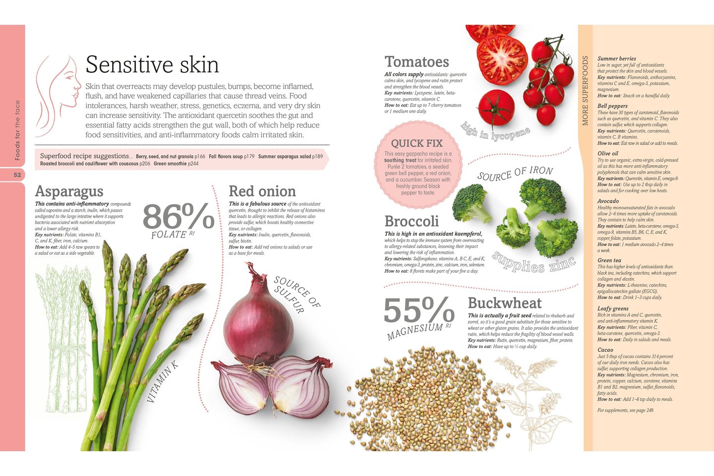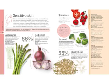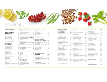 Visual Design: Stunning photos of beauty-enhancing foods with easy-to-follow recipes and clear infographics on how the foods benefit your body.