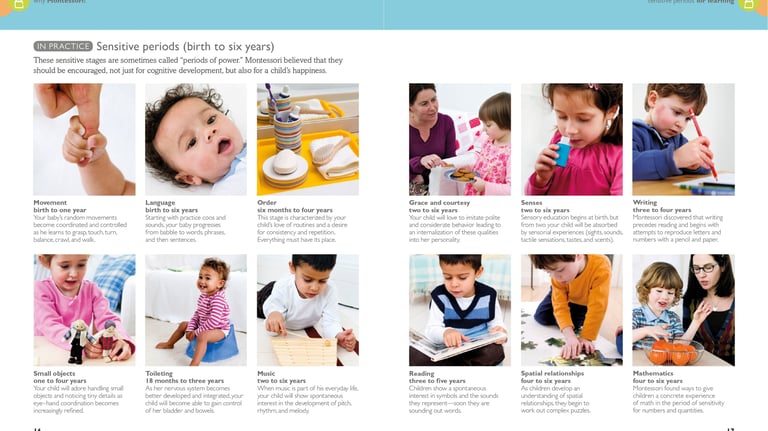Help your child thrive by understanding their sensitive periods for learning. This page provides insight into key stages, from movement and language development to order and grace, for optimal growth