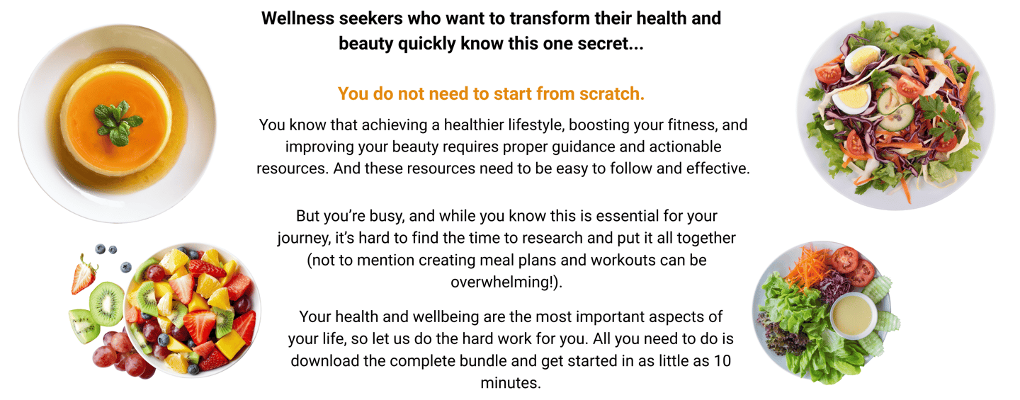 And this bundle comes with ready-to-use meal plans, fitness routines, and beauty tips that you can start using right away.